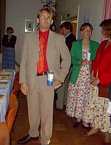 Fredrik på Cacke och Kerstis bröllopp. Fortfarande beväpnad till tänderna!